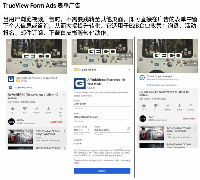 同时,谷歌针对 B2B 企业,推荐三大 Youtube 平台视频广告类型: