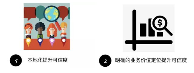 谷歌观点:独立站优化重点在于提升网站可信度,优化移动端体验并结合广告需求进行相应设置 研究表明,绝大多数 B2B 客户在交易过程中更关注供应商的可信度,因为 B2B 行业的交易链条较长,相应地合作周期较长,落地页反应的可靠信息有助于客户在最后一个环节发生高质量转化。提升落地页的可靠程度,一方面在于提供充分的本地化相关信息,另一方面在于将本身产品/服务的价值定位和具体内容进行精准和简练的呈现。 打造真实可靠的网站包含一下2个主要内容: