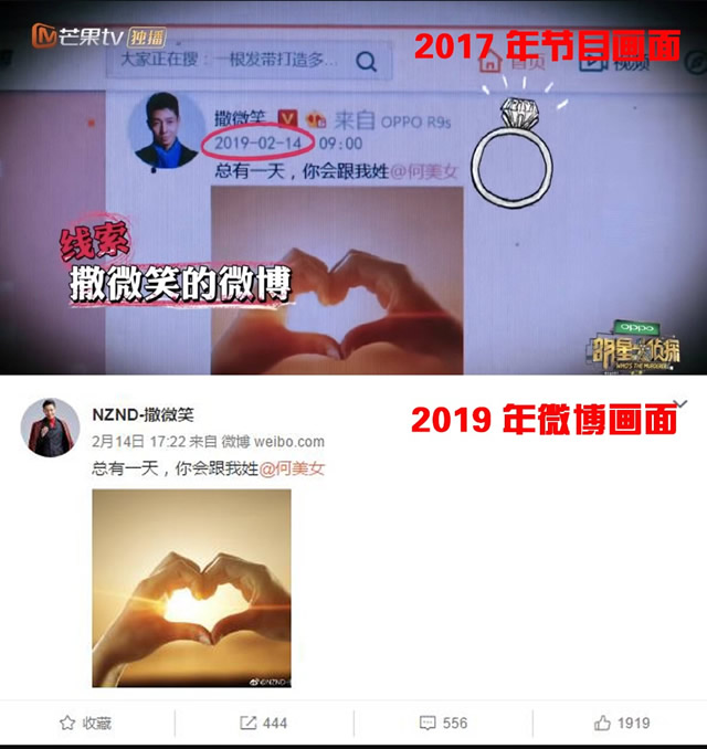 而且特别用心的地方在于节目组一直与观众共同遵守“信以为真”的原则,即便所有人都知道这些人物是假的,但是由于这些社交媒体账号的存在,节目制作方和观众就十分默契地选择相信。 举个例子来说,在2017年播出的《明星大侦探》第二季中,出现了一条关于2019年时空发布的微博,等到这一天真的到来时,节目组就真的用那个账户如约发布了一条微博。