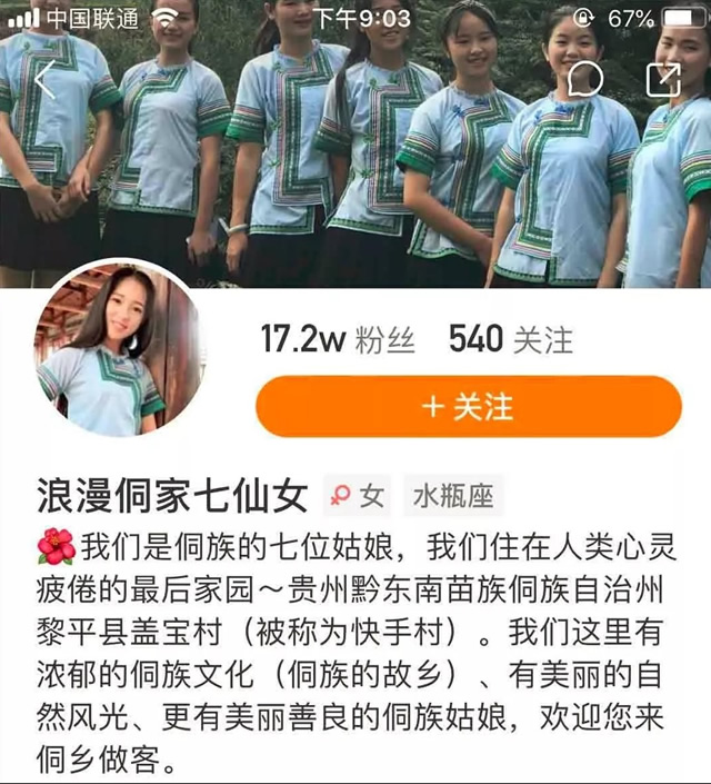 而在2018年下半年,余万伦签约MCN奇人匠心,开设抖音号“油纸伞大师”后,借助抖音强大的带货属性,凭借非遗本身自带的超凡魅力、以及MCN的精心运营,余万伦不仅陆续积累了25.4W粉丝,团队油纸伞产品在抖音内的电商收入也已经超过了实体店。根据相关报道介绍,2019年第一季度已出售的产品中,来自抖音的订单占到60%,而其中一些款式的订单已经排到了明年。 有感于中国非遗传承人估值过低的90后张建华,拉着自己摄影专业的同学创立了非遗视频制作机构寻古MCN,其账号“寻古”发布的视频均是各类非遗传承人的手艺展示。而他们帮助浙江省省级非物质文化遗产的纸伞技艺闻士善制作的一个视频,不仅获得了40w点赞,也极大带动了产品的销量:一晚上接了近百单,营业额达五六万元。 在通过短视频平台极大拓宽了传播范围的过程中,拥有实体化产品的非遗项目不仅提高了自身影响力,变现潜力也大大提升,而随着抖音上线“小米商城”等多款电商小程序,这种变现潜力仍然有着巨大的挖掘空间。 对于表演类的非遗项目而言,虽然不能像能够产出实体化产品的非遗项目那样,直接通过电商渠道完成直观可见的商业转化,但是在短视频平台的传播影响力之下,也能完成线下的有效转化。 快手名为“浪漫侗家七仙女”的是一群来自贵州省黔东南州黎平县盖宝村的侗族姑娘,原本在偏僻的盖宝村里很难找到可靠的致富途径,当地村支书说服了这几个姑娘组成“七仙女”账号,她们就利用这个账号向外面的世界介绍侗族日常生活和侗族非遗文化,将侗寨、侗歌等侗族的珍贵非遗文化通过短视频的形式向世人展示。