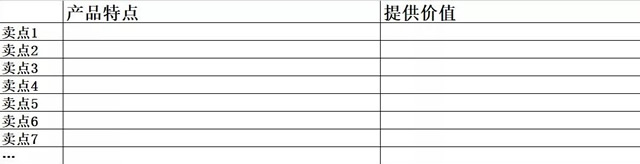 其次,罗列出产品的所有特点,填入表格中,如下图所示,