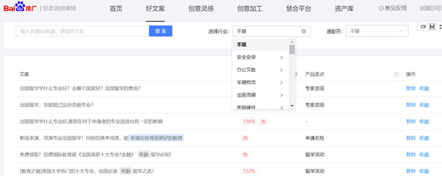 2. 百度创意馆 可根据行业、通配符进行筛选,查看百度原生上各广告主投放的优秀素材。