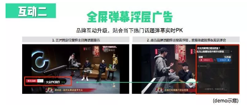 此外,基于IP内容延展出热门的话题也能激发弹幕人群强烈的互动意愿。例如近期热播的《破冰行动》中#蔡永强是不是狼#热门话题被刷上热搜,弹幕内的讨论更是不绝于耳。目前,爱奇艺开发的【全屏弹幕浮层广告】就是针对网民喜欢边看边聊的热门话题,全新上线的弹幕广告新形式。品牌可以借势热门内容,贴合热议话题与用户实时互动,为品牌实现借势曝光一举两得。