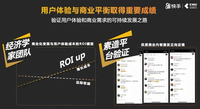 严强介绍,快手商业拥有以快手广告和商业生态两大产品矩阵为核心的快手营销平台。其中,快手广告包括信息流广告,作品推广,话题标签页,通过一系列产品组合,快手广告帮助客户的投放更加精准高效。 商业生态产品矩阵更为多元,分为社交生态和内容生态两方面。其中,社交生态产品包括快接单和激励计划。 快接单将从一个单纯连接广告主和快手创作者的平台,演变成为外延更大的商业产品。“我们会把撮合效率做的更好、会进行分层管理。纯面向客户需求的,快手商业提供标准化的产品和工具、开放KOL数据和标签。此外,我们会帮助他们做变现,使创作者和广告主的合作程序化。” 针对中腰部和尾部的创作者,快手商业通过激励计划,发挥创作者的私域流量价值。“这种方式我们认为是相对普惠的,比如一个创作者有1万粉丝其实就可以加入这个计划了,如果ta的内容生产能力好、作品上了热门,有可能一个月会带来十几、二十万的收入。”激励计划通过AI对人与内容的双重匹配,在保证用户兴趣的前提下,系统自动为创作者的日常视频选择性地添加内容相匹配的广告。 目前,激励计划在对创作者逐步放量中,最多的一位创作者通过激励计划获得超过3万元的单日收入。在2019年“618”期间,快手创作者共获得了超过6000万的收益分成。 在内容生态方面,快手商业正在构建以商家号为核心的内容营销基地。商家号可以帮助品牌广告主、中小商家、MCN和所有潜在客户入驻快手,基于商家号去搭建营销阵地,对客户进行全生命周期的营销管理。 “我们的客户越来越认可快手商业的营销价值,”因此严强认为,快手有理由也必须继续打磨商业产品矩阵,帮助更多创作者在快手上获得商业价值。 让用户体验持续正向 严强深信,完成商业收入的最重要前提就是用户体验。在快手决定做商业化之前,管理团队已经展开过很多次讨论,最终快手创始人、CEO宿华提出了“用户体验量化体系”。 “我们会联合经济学家团队优化用户体验,进行多个维度的测算,用科学方法确保用户体验的持续正向。”