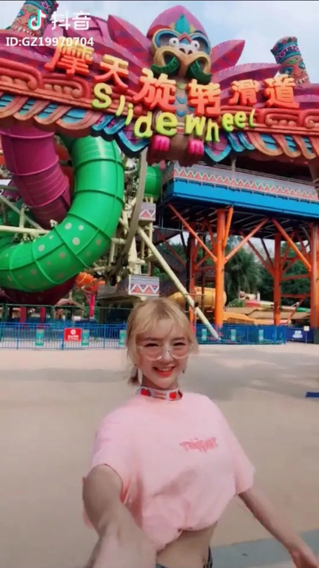 其中一个作品中,她联合队友在广州长隆,一起跳抖音上的热门舞蹈。利用抖音平台群体的极高分享效应,提高粉丝的参与感与模仿效益,引起了大规模的传播,视频播放量达332.5w并获得了10w点赞量。激发了年轻受众去长隆水上乐园“抖掉水逆”的欲望,并通过口碑传播和其喜欢分享的特性,带动朋友一起去玩,让乐园的客流量实现爆发式增长。