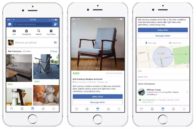 Facebook MarketPlace 在表现形式上,这些搜索广告与信息流广告相似,包含标题、图片和文本,但仍未确定这些广告会出现在移动端还是客户端,顺序是否排在自然搜索结果的前面。而在谷歌这类浏览器中,一般搜索广告都会出现在首位。