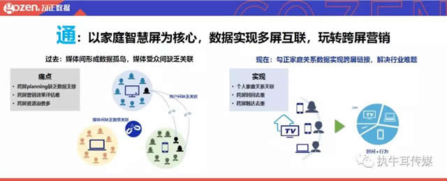 说到数字营销, “移动营销、OTT营销、私域流量……”都是当下最为耳熟能详的“热词”。互联网下半场、移动互联网、5G时代、人工智能,当这些新理念、新科技一齐涌来的时候,给人们的生活场景,消费偏好,广告策略,营销生态都带来更具颠覆性、更加智慧的变化。正如勾正数据董事长&CEO喻亮星在“2019家庭数据营销创新论坛”开幕式中所说,“整个智慧屏产业格局生态正在形成,产业价值链也在逐步稳定……”一句话点出了智慧营销所面临一个新的风口——智慧屏营销时代的到来。 “通、广、精”成为勾正数据的产品之道 5G时代的到来给媒介环境带来了深刻的变化,一切皆可上网、一切皆可智能、一切皆可互联,为营销领域解决信息孤岛、深耕家庭营销市场带来新的机遇。面对“碎片化”、“多屏化”的现代生活场景,不论是广告新人还是行业老手,都有一个共同的梦想,就是把这些屏幕统统打通,实现跨屏地和消费者互动和接触,做到广告和数据的多资源融合。如今,这样的梦想在勾正的营销数据管理平台努力实现中。 勾正数据创立了CHID(China HouseHold ID)体系,以客厅电视作为每一个家庭的识别标识,实现跨屏同源设备的唯一标识识别打通。客厅电视代表着整个家庭,手机代表着每一位家庭成员,都纳入到了CHID系统之中,而且还覆盖了家庭中其他的智能设备,形成一个“家庭生态圈”CHMP(China HouseHold Data Marketing Platform),是家庭营销数据中台解决方案。 截止到目前,勾正数据CHMP已经标识了1.23亿的Household ID,家庭生态圈连接了3.6亿台的移动终端设备。通过CHID体系,打通了TA-TH的全链路,深度识别了家庭成员的个人属性,包括:家庭成员的数量、家庭身份、年龄、社会关系构成等多种个人信息标签。通过对智慧屏全数据的收集,从开机到关机的所有收视行为,点播、直播偏好等信息,成为全新的、个性化的解决方案的数据基础。还可对传统的电视广告排期进行分析,把相关的广告排期上传到CHMP平台,进而分析出不同的电视广告投放后触达到的各类人群。利用这样的信息与个人属性进行匹配,把OTT广告和传统的媒体广告打通关联的手机,转化成为专属屏幕的“碎片化”信息。 勾正数据推出CHMP管理平台的核心目的是为广告主们提供“通、广、精”的营销解决方案。概括说来就是打通多屏使用场景,更多的触达受众群体,精准绘出用户画像,让广告主的广告推送更加聚焦,更个性、更人性;营销方案更集约、更高效、更吸金。正如喻亮星在接受执牛耳采访时所说:“智慧屏将迎来新的生态合作和商机,未来仍有较大的增长预期”。 精准触达、个性画像,成功案例增加产品自信 勾正数据的CHMP不仅是可行性的营销策略研究,更是经历过实践检验的可行性数据管理平台CHMP成功地帮助某日化品牌有效地提升广告触达。该日化品牌在3月份的广告投放中,电视开机率为74%。经过进一步的分析发现,74%的开机中有50%的人是通过直播观看。因为品牌全部投放都是直播广告,广告只触达到了其中的一半,也就是25%。对于整体的电视观众来说将近49.2%的电视观众没有被触达,这些观众成为未来提升广告触达的目标。通过CHMP系统,将这49.2%的观众进行了筛选,最后计算出了未触达的人群。通过对观众的计算,可以准确的筛选出没有被触达到的人群在各个媒体间的比例,通过对媒体的计算,可以发现没有触达的媒体数量。针对计算结果对人群和媒体重新进行了广告推送,对广告触达率有质的飞跃。