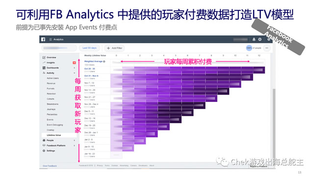 不管是哪一类游戏,都必须获得一定的LTV数据作为基础,方能对后续的LTV进行预测。获取LTV数据的途径有很多,Facebook Analytics便是其中一种,方便快捷。