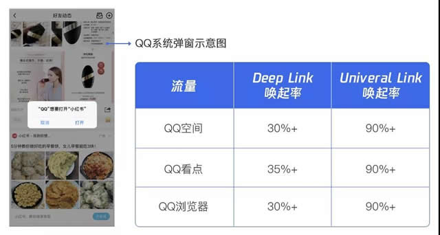 流量优势:购物垂直场景,高ROI。 投放建议: 1、注意外层文案,提高外层点击率; 2、抢鲜体验QQ购物竖版视频,提升转化效率。 二、产品能力提效 1、iOS Universal Link优化跳转链路 一般情况下,当广告主在投放iOS应用直达广告时,如果用户首次点击跳转应用,会触发iOS系统弹窗提示,跳转前多加了一层阻碍,进而导致最终唤起率降低。而使用 Universal Link 链接进行直达时,用户点击广告后,可直接唤起目标APP,极大提升应用唤起率。 目前手机QQ、QQ空间、QQ浏览器均已支持Universal Link,且同时支持DPA(动态创意广告)。这一产品能力可帮助电商广告主低成本召回高价值IOS用户,有效提高大促GMV。