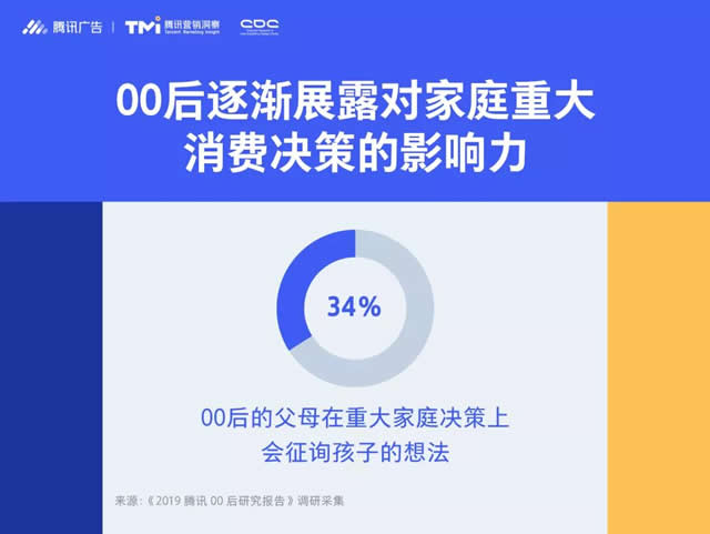 图片来源:腾讯广告 【小辈力量,不容小觑】 认清00后的消费影响力! 重点行业:房地产、家居装修、汽车 在众多被看作家庭重大消费的领域里,行业常忽略00后的存在,往往认定:既然做出消费决策的是父母、是成年人,那么才刚刚进入青春期的00后,还不是需要努力沟通的人群。 这种“传统观念”亟需打破。00后虽然是家中的小辈,但他们已经展现出极大的消费势能。随着年纪增长,他们不仅有了更强的消费力、不断扩张的消费场景,还逐渐在家庭决策中展现出越来越重要的影响力。报告显示,48%的00后父母会在家庭日常消费上征询00后的意见,重大家庭决策上也有34%的父母会征询孩子的想法。 那些被行业认定为完全由家长决策的消费类目,如房地产、家居装修、汽车等,除了与家长沟通外,也需要将00后视作重要的沟通对象。行业需重视00后的喜好,积极与00后进行价值联结,并结合他们喜爱的元素与其建立良好的沟通。