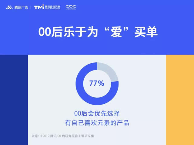图片来源:腾讯广告 【兴趣话题,引爆嗨点】 掌握与00后沟通的独家秘笈 重点行业:零食饮料、服饰鞋包、美妆护肤、旅游 各类快消品牌早已敏锐地感知到00后的消费潜能。从2018年00后的成年元年开始,商业品牌逐渐向这群“新人类”投去关注的目光。一年来,解读00后专属黑话的文章接连出现。品牌活学活用,将社交黑话融合在了日常营销活动中。 这一趋势无疑赢得许多00后的关注,但营销人同样需要知道,这些只是打动00后最表层的一步。 77%的00后表示,在购买可以自主选择、自主决定的日常消费时,会乐于为“爱”买单。他们究竟爱什么,才是品牌需要深挖的核心信息。 《2019腾讯00后研究报告》显示,与动漫/漫画、升学/学习、游戏等元素相结合的产品,更容易引起00后的关注。在零食饮料、服饰鞋包、美妆护肤、旅游等00后能够自主决定的消费品类以及受家长影响较小的消费品类中,品牌可以多多结合00后的兴趣偏好,巧用二次元、游戏IP等对00后具有吸引力的元素,赢得00后的偏爱,抢占商业先机。