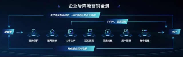 图片来源:TopMarketing 背靠巨量引擎,海量、多场景大数据及强大的算法能力下,云图成为营销决策者的营销大脑。重新定义了与用户的关系,助力品牌沉淀、深挖品牌私有数据。 非常倚重精准营销的互联网后半场,营销江湖的轩辕弓——云图助力品牌沉淀、深挖品牌私有数据,瞄准需求,一击中的。 兵器三:方天画戟—企业号 南帝北丐东邪西毒中神通,单凭名号就让人闻风丧胆。身处江湖,威名很重要。同样,战场上“战功卓越”的兵器也会对敌人产生强大威慑力,历史上最具威名的兵器当属方天画戟。 商场如战场,要想驰骋商场,品牌知名度必不可少。流量获取难下,品牌阵地营销愈发重要。基于此,兼具品牌宣传和阵地营销功能的企业号堪称营销江湖的方天画戟。 作为企业的一站式营销服务平台,企业号就像方天画戟,最突出的是品牌宣传属性。通过持续输出品牌内容,传递品牌理念,提升品牌知名度。品宣外,通过承载的POI、购物车、私信等工具,企业号兼具销售引导、线下导流、用户连接等功能。