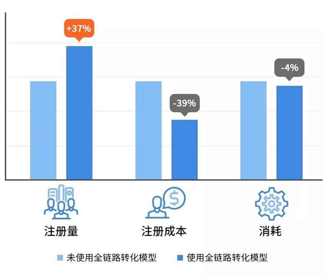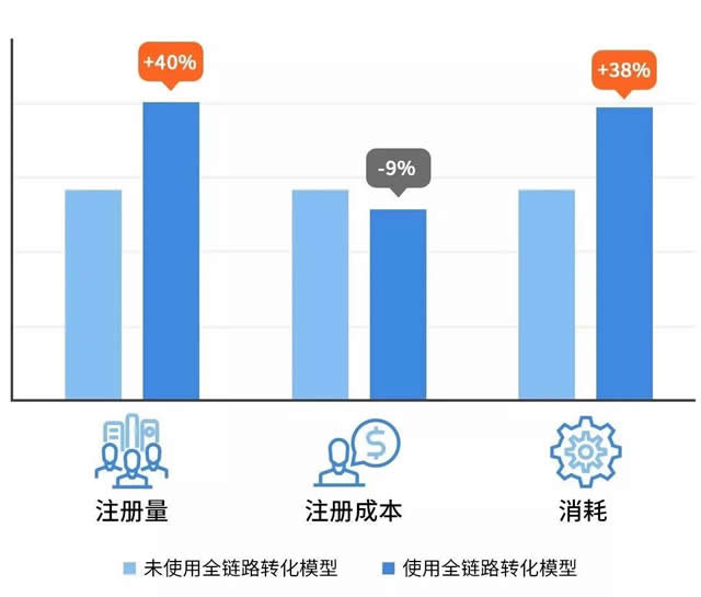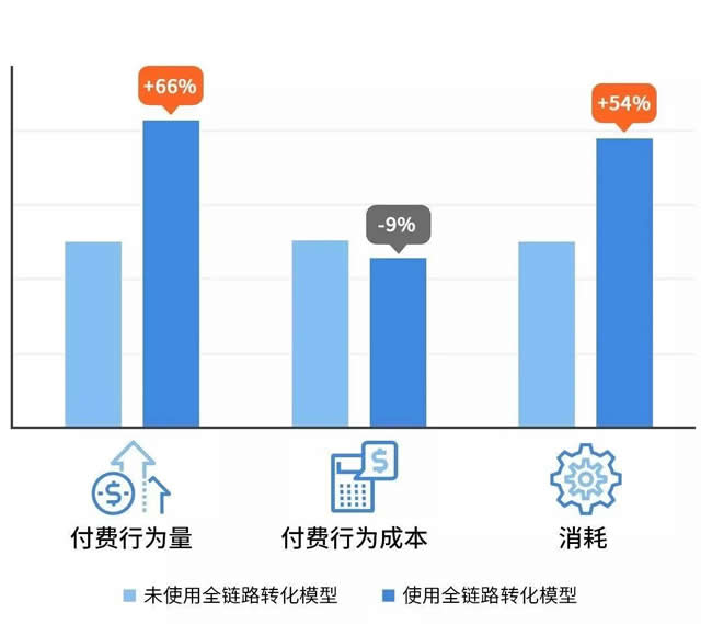 全链路转化模型能力升级,转化效果有保证 1、模型升级,高效预估深度转化价值 对众多广告主来说,深度转化行为效果直接影响着广告的投入产出比。但随着转化层级的加深,数据会逐渐稀疏,在传统转化模型中,数据越稀疏,转化率预估准确的难度会更大,从而导致深度转化行为的效果优化得不到保证。 而升级后的全链路转化模型,能充分利用同一广告的多种转化行为的数据,高效预估深度转化价值,寻找优质的目标人群,显著提升广告投入产出比,让每一分钱都花得更有价值。 2、系统智能优化,解放广告主人力 系统可以自动学习转化行为,智能优化深度转化行为效果。广告主只需在上传转化数据时,增加更多的转化行为类型即可,无需额外进行任何操作! 仅需一步,即可完成优化! 广告主仅需一步:上传全链路转化行为,全链路转化模型会自动对转化行为进行学习,用于优化广告效果。 建议上传的转化行为,请见文章结尾附注。 全链路转化模型多行业应用,提升深度转化行为效果 1、某游戏头部客户,上传全链路转化行为,提升广告付费效果。 某游戏头部客户最初使用激活作为优化目标投放,激活效果稳定,但期望进一步提升付费效果。 为获取更多优质付费用户,客户上传全链路转化行为:激活、注册、付费行为、付费金额。 该客户使用oCPA投放,并以“付费行为”为优化目标。 通过实验对比,使用全链路转化模型的广告,付费行为量提升66%↑,付费行为成本下降9%↓,消耗增长54%↑。