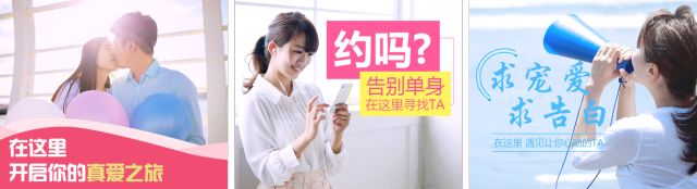 • 字体选择:字体不宜超过3种,传达创意信息时需使用适合阅读的字体,如微软雅黑、方正系列字体;如需传达活泼气息的主题,可选用华康圆体、方正准圆等字体; • 亮点文案:卖点信息重点突出,推荐文案:约会、聊天交友、告别单身、找结婚对象等 • 文字颜色:文字要与背景区分开,突出主题信息,背景是暗色系时,文字可选用白、黄、粉等亮色突出信息;当背景为亮色时,文字可用红、棕、紫等稳重的色系; • 装饰元素:可用爱心、花瓣、婚纱、捧花、英文字母等元素点缀画面,辅助文字排版与强调画面气氛。 撰写技巧 婚恋交友类 1、明确受众 • 文案特点:重点突出,言简意赅,针对不同的受众需求设计不同的文案形式。 • 文案方向1:针对单身的,想要告别单身的用户群体。