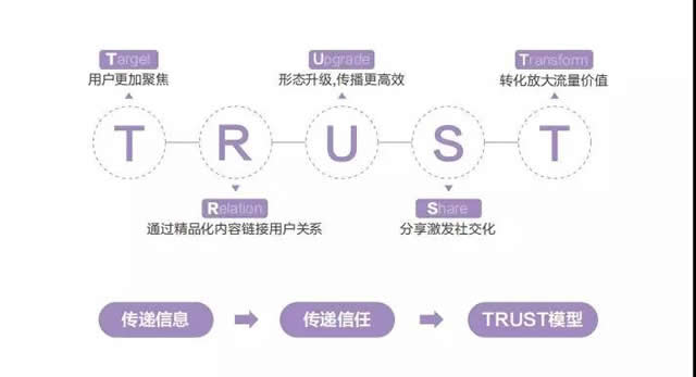 针对短视频营销洞察,本次报告首次提出了短视频营销策略模型——TRUST模型 Target(用户更加聚焦)、Relation(通过精品化内容链接用户关系)、Upgrade(形态升级,传播更高效)、Share(分享激发社交化)、Transform(转化放大流量价值),从传递信息到传递信任,覆盖品牌营销全过程。