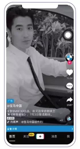 Share:发挥“达人效应”,实现品牌声量裂变 报告显示,超过42.5%的广告主会选择达人、明星视频定制作为短视频营销的内容,可见好的营销是能够借力,借助名人以及社区意见领袖的声量,调动起背后大量粉丝等资源,进而放大品牌效力,优化品牌营销价值。同时,“明星达人”更符合年轻人的认知模式,容易形成品牌圈层信任,因此聚拢“达人资源”,通过短视频话题发酵,实现病毒式营销是最见成效的营销方式。 在BMW X3全新上市期间,通过高流量价值的明星资源,为产品上市创造了强大的市场声量,为宝马新车上市带来了“强曝光、高互动、粉丝沉淀”的营销价值。在赵又廷与宋佳的角色预告曝光下,实现了开屏总曝光数高达606.5万+,总点击数98.5万,为宝马投放带来的总播放量高达1.02亿。