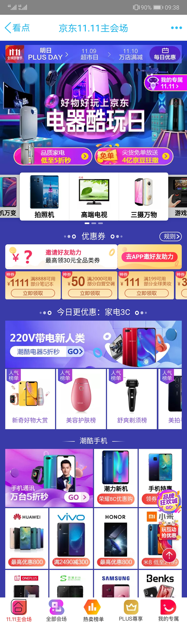 点击广告以后,直接进入京东双十一主会场,页面上会有各种省钱优惠,还有好物推荐! 双十一,购物季,剁手季,一年一度,所以大家都会在双十一的时候各种买买买,该买的时候就得买。广告主们应该怎么做双十一营销?广告主怎么在双十一之前提前预定流量?就选择腾讯社交广告即可,广告资源丰富,广告主可任意选择单个广告资源,也可以各广告资源通投,就能品牌宣传,又能让用户购买单品!总之,双十一营销找准目标受众人群,找准人们最需要的单品,都有可能让用户马上下单购买!