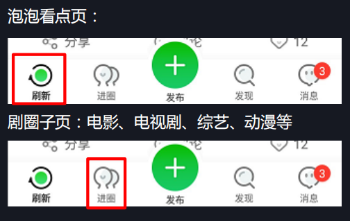 泡泡看点页会有很多看点内容,刷圈子页包括电影、电视剧、综艺、动漫等内容。