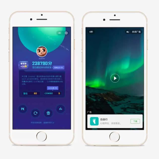 通过投放小游戏互选定制广告,腾讯公益收获超过2000万曝光,视频点击率大幅提升。 今年春节,乐于尝试新鲜营销玩法的麦当劳再度携手6款创意小游戏以及跳一跳在春节期间进行创意定制,让用户在轻松的玩乐氛围中自然而然接收品牌信息。 麦当劳通过小游戏互选定制广告,将招牌产品的品牌形象与游戏设计深度结合。通过定制皮肤、礼包及关卡等形式,让玩家们在最激情的一刻产生对麦当劳“2019第一桶金”的强烈认知。此外,品牌还专门设置了用户跳转礼品卡小程序,把那份情绪变成了实在的转化。