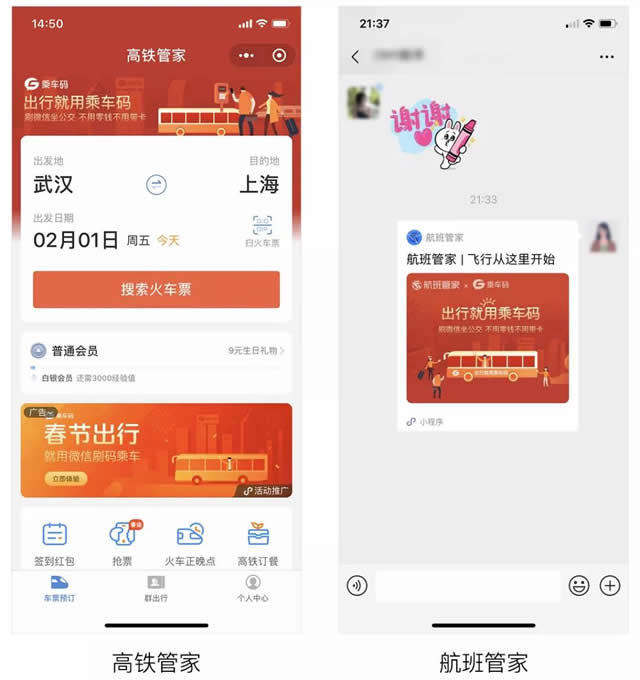 而在微信广告成为标配,广告主们司空见惯之时,远离套路、不断创新的“私人定制”成为品牌脱颖而出更好的途径。电影《私人订制》中,冯小刚导演用一个个故事阐述了“私人订制让你的人生不留遗憾”的客户服务宗旨,而各种定制创意就是微信为品牌提供的“私人订制”,目的正是让品牌的营销不留遗憾。这也可以解释,为什么有的品牌投微信广告火不了,有的就行。那些熟稔于各种微信广告功能,变出各种营销戏法。 每年春节,春运都是重头戏,半个中国的人都会卷入其中,影响力之大是一般节点不能比拟的。乘车码考虑到“春运最后一公里”的刚需,联合高铁管家及航班管家——春节返乡人群最常使用的小程序应用之一进行小程序互选广告定制。通过小程序互选定制广告,让人们在返乡后享受“扫码乘车”服务。而春运中多维度的出行需要,也让品牌信息在特定场景下有了更多曝光可能。