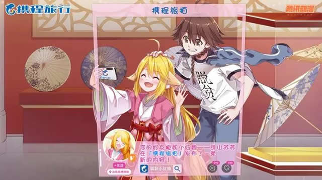 对二次元群体来说,“互动”是非常关键的需求。对此腾讯和携程做出创新,除了彩蛋植入“携程旅拍”内容外,让“小红娘”苏苏以首个动漫IP形象入住“携程旅拍”,成为旅游博主。