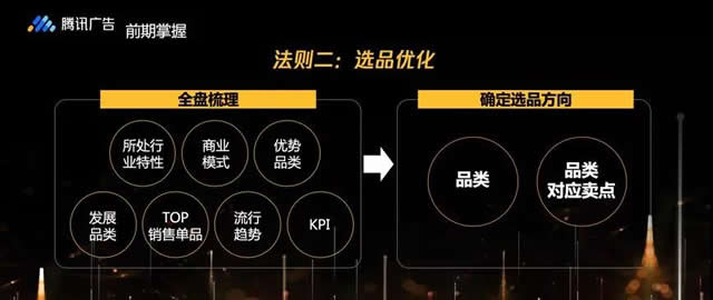 法则二:选品优化 腾讯了解到品牌的品类、地域、季节、卖点等诸多条件,都会影响品牌商品的关注度和销售量。因此,在协助品牌进行产品营销推广时,腾讯协助品牌结合数据进行选品分析,优化选品结果。