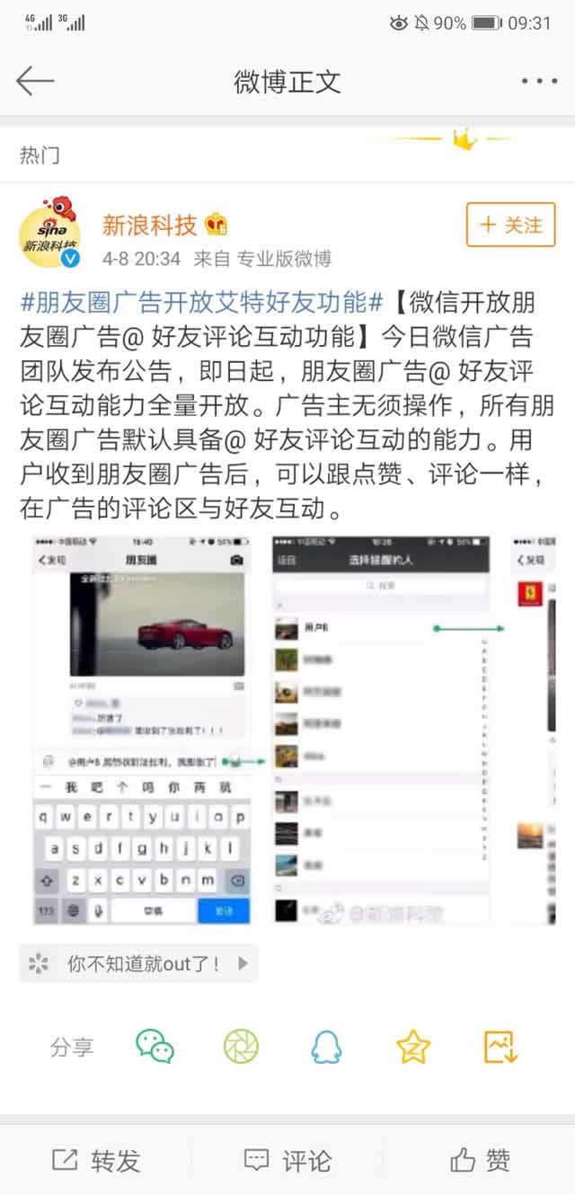 最近,微信朋友圈广告上新了@好友功能,这意味着如果你在微信朋友圈看到一个好广告,不仅仅可以自己看,还能够邀请你的小兄弟,小姐妹一起来看看这个广告!