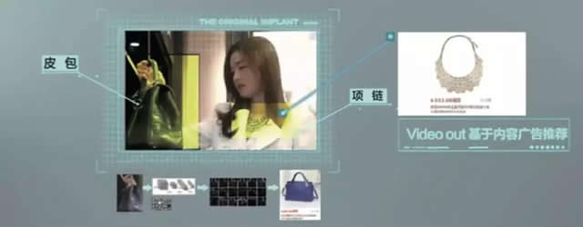 爱奇艺的视频植入技术产品“Video In” 经过技术发展,目前已经能够实现在演唱会等直播流中实时植入虚拟广告。2018年,阿里战略投资视频AI商业应用公司Video++,该公司的Video AI系统,可以进行精准的视频内容解析,建立视频结构化标签数据库。这种可自定义的价值分析工具可以帮助广告主找到大量与自己品牌内容深度结合的广告点位,建立广告与影视剧内容的关联性来优化内容营销产品的投放逻辑。 为了将视频内容与购买无缝连接,视频网站还开发了通过深度学习、同款识别算法和人机交互,进行视频内物品快速精准识别并导向购买的规模化操作产品。比如爱奇艺的“Video Out随视购”,优酷的“边看边买”等。