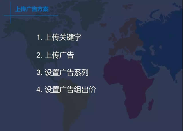 使用编辑器上传广告方案主要是有以下几部分组成:上传关键字、上传广告、设置广告系列、设置广告组出价。