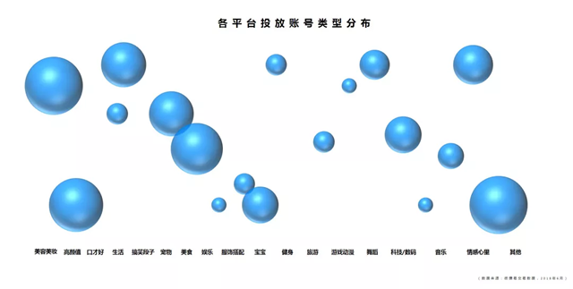 产品/品牌植入,是通过娱乐化的原内容植入品牌/产品,具有广告既内容的优势。常见的植入形式有微电影、段子、短剧、手指舞、舞蹈、音乐等。 品牌互动活动,以行为模仿和话题参与为主要表现形式,可以积极调动用户的兴趣,裂变性强。常见的表现形式有段子、短剧、手指舞、舞蹈、音乐等。 产品/品牌种草,通过短视频达人的推荐分享,轻松种草用户。这样的营销场景,贴近用户视角,增强了信任度,达人通常以榜单推荐、测评、体验等方式种草。 线上活动传播,通常见于促销打折等活动中,短时间内实现大规模曝光,可以利用短剧、派奖和音乐等形式传播。 品牌故事,通过品牌故事发声和传达,高举高打,影响用户心智。 线下片段剪辑,企业现场发布会等线下活动的跟拍,用某一视角展现亮点,充分整合了线下资源,实现高效率的传播。主要包括了鬼畜和剪辑两种形式。 产品展示,产品视频化、立体化的展示,多应用于电商平台,真人出镜,产品出镜,更真实的营销效果。 (5)美容美妆、高颜值、搞笑段子是品牌主们的短视频投放首选账号