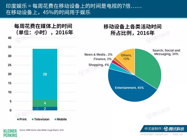 印度:海外推广要娱乐化 据印度以及东南亚副总裁Rajan Anandan表示,互联网主要是朝着声音、视频以及方言三个方面发展,“声音已经成为许多新互联网用户偏向的使用模式。” “此外,在线视频占据了所有移动流量的75%。大多数互联网用户都是印度语使用者,该数字预计在未来两年时间内增长至5亿人以上。95%的视频内容也都是以方言呈现的。” 即是说,寻求娱乐是印度网民上网的主要原因。有数据显示,在移动设备上,印度网民45%的精力都在娱乐方面。