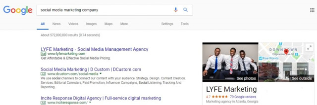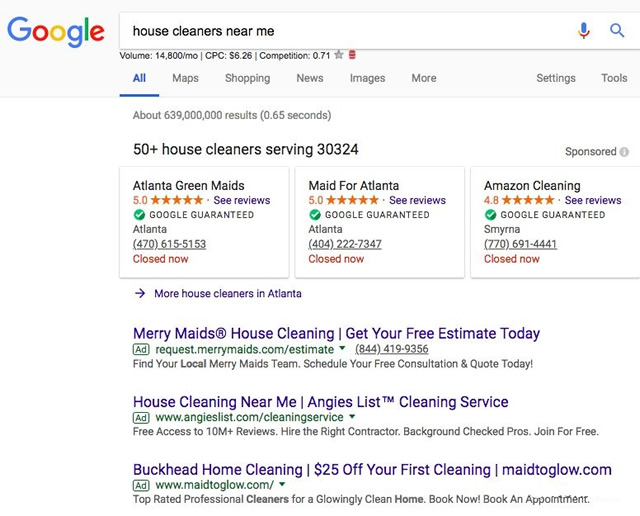 仅凭它能够精确定位到企业所对应的消费群体并向有购买倾向的用户进行广告宣传,Facebook就会在众多小企业中拥有市场。这些是很多广告平台都做不到的一点。 Google Ads和Facebook Ads如何运作 广告及其基于付费搜索的产品可让企业主根据用户在Google上输入的搜索查询来定位用户,也称为关键字。 这些广告主要以文字为基础,旨在向用户展示一些与问题相关的搜索结果以帮助用户进一步搜索。 从用户的角度来看,当针对某个特定关键词进行搜索的时候,搜索结果会在不到一秒的时间内显示出来。但是,在每一个搜索结果界面的开头,排在最前面的(如下图显示,标记着“ad”的)的答案,通常是付费点击的结果。