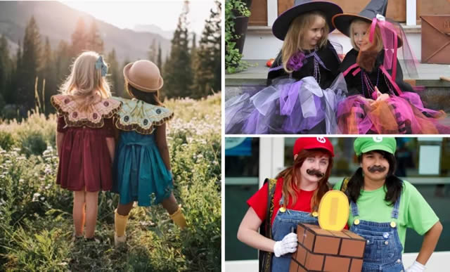 超级女英雄系列战衣 b.姐妹花(Friends Costumes) 情侣装当然总有市场,但谁说闺蜜装不能在 party 上成为焦点?想想看,女巫聚会是不是也自带萌点?共同喜欢的球队、童年爱打的游戏、最近煲过的情景剧都会成为 best friends 们选择万圣节装束的灵感源泉。没准备不要紧,开动脑筋为库存做做搭配,海绵宝宝和派大星也是一对好伙伴啊!