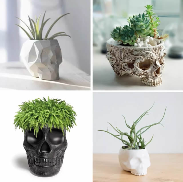 左:工业风南瓜造型摆件;右:金属风南瓜造型收纳盒 b.骷髅头里的生机 江山代有才人出,2016 独角兽当道,2017 菠萝和仙人掌至潮无敌,但来到 2018,天下据说都是骷髅头的。