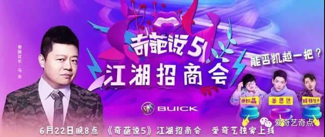 躺赢《奇葩说5》借势&植入玩法更多样 基于在《奇葩大会2》中良好的合作,这位壕气有想法的金主爸爸,在6月份借势《奇葩说5》即将上线的热点,与爱奇艺联合策划了一场线上发布会——《奇葩说5》江湖招商会。把节目招商跟发布新车转变成了比稿定招商和宣传的模式,重新定义了品牌和网综的合作关系。 通过《奇葩说》被人熟知的姜思达,颜如晶和戏精牡丹组成比稿三人组,分别发布各自以“凯越你的人生”为主题的创意视频,提出了“人生打怪路,凯越是buff”、“凯越不红,天理难容”、“follow别人没有门,掌声送给凯越人”等朗朗上口的宣传口号,洗脑推荐,瞬间抓住观众的心。