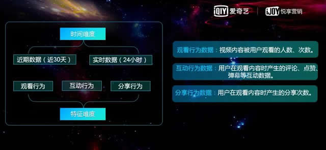 爱奇艺平台中《小猪佩奇全集》和《延禧攻略》的累计播放量都非常高,但是《小猪佩奇全集》的受众面和用户互动都非常少,这种情况下,视频内容播放量就并非是评价作品优质、受欢迎与否的唯一指标。而且随着行业的发展,它已经不能满足对用户的充分参考。过度关注播放量也给行业带来了如“刷量”等诸多不良影响。关闭前台播放量显示后,将重心回归创作并为用户提供优质的内容和服务体验。 热度值能告诉你“当下什么内容最火” 热度值涉及到哪些维度?各个维度的权重如何分配?接下来小编就为您一一解答。 在数据维度方面: 在时间维度方面,通过视频专辑30天之内的表现和24小时内的实时积累综合去评定一部剧的热度; 在特征维度方面,除了包含传统的播放量、UV,还包含了互动行为数据、分享行为等综合数据维度,用这些指标共同评价一个视频的表现如何。