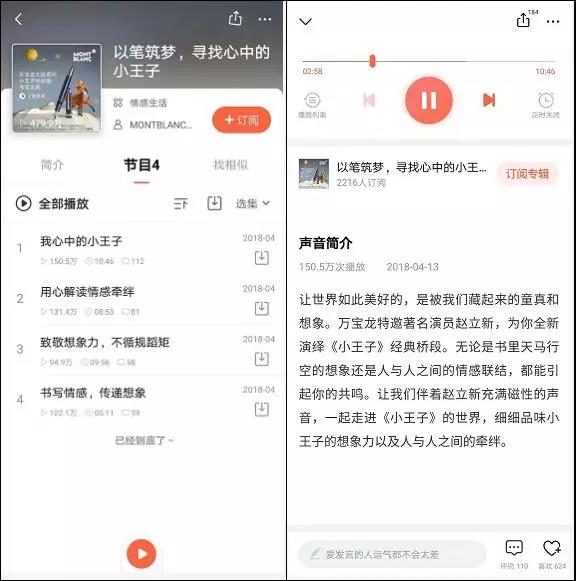 万宝龙大班系列小王子特别款 3.传播方式年轻化: 最后,万宝龙也在传播方式上推动年轻化,用年轻人喜欢的语言和语境与他们交流。 此次万宝龙与抖音的合作就是一例。此外,万宝龙也曾在喜马拉雅FM上邀请演员赵立新,为用户全新演绎《小王子》的经典桥段,总播放量接近500万。