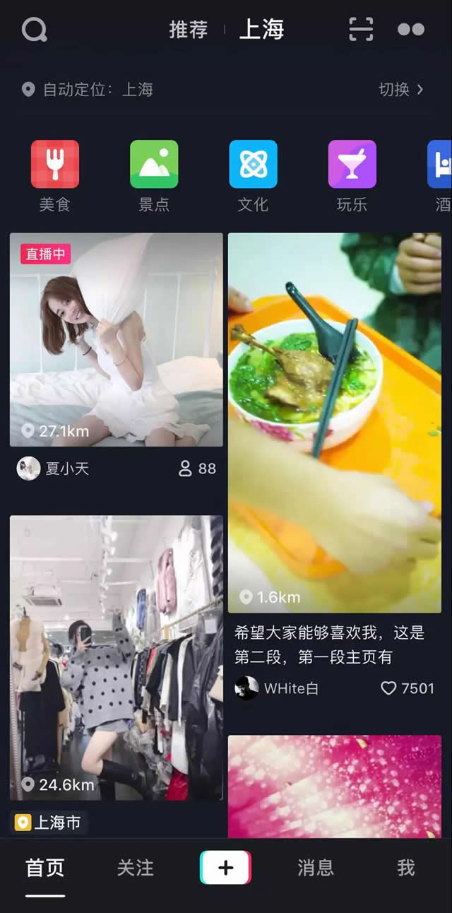 BGM(城市音乐):《南京,南京》《西安人的歌》 Eating(本地饮食):成都的“石棉烤肉” Scenery(景观景色):重庆的“洪崖洞” Technology(科技感的设施):张家界的“玻璃悬索桥” 以上这些符号都能够建立一个丰富的城市形象,让不同城市都拥有特定的辨识度。 2、针对品牌的痛点,抖音继续深耕本地化营销 这些大小城市的爆红,无疑印证了抖音在区域营销上的影响力。从去年开始,抖音就在深耕本地化营销,上线本地频道,点进去可以看到景点、美食、文化等分组。