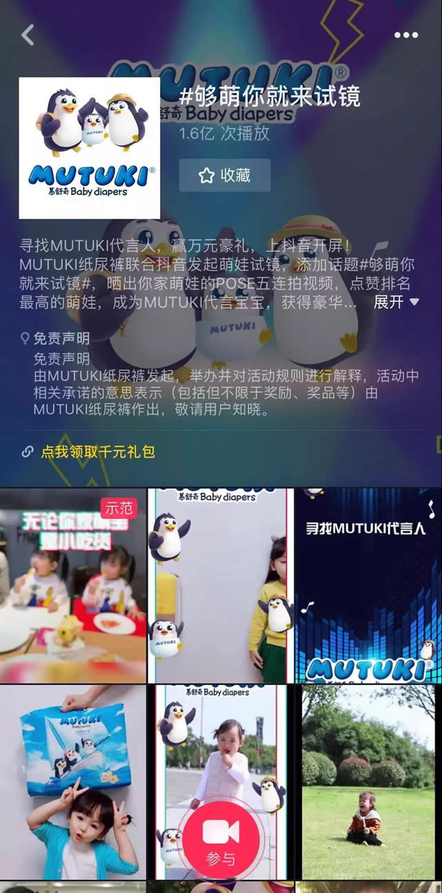 在主题分享中,做抖音本地化营销有很多需要突破的点,例如地域跨度、文化差异、品牌区隔等,品牌更需要精准的流量,适配的内容以及合理的应用场景。 面对诸多痛点和诉求,未来探索区域营销的过程中,抖音可以挖掘哪些更过的潜力,是全行业好奇的地方。多本地品牌,有着很强做品牌的诉求,想建立自己品牌,建立与目标用户的潜在联系、而短视频平台可以去承载这些,因为它具有很强的表现力、社交属性,以及与精准用户的连接能力。抖音不是一个单向传播平台,品牌主可以在这个平台上去建立自己的阵地,做自己的粉丝沉淀。 抖音的区域营销探索的潜力巨大,它能够解决很多本地企业的问题,比如,既要做品牌,又想跟抖音上的用户产生互动。 另一方面,随着移动互动网的快速发展,一些品牌也面临着区域营销的难题和痛点。 抖音营销的核心痛点应该是发展的诉求。随着抖音这样新型平台的这种涌现,包括我们的广告主都成为了我们的用户,所以他们对于新兴事物和新媒体的感知发生了根本性变化。 在这个变化之后,区域品牌或本地企业在品牌营销上有三方面诉求:第一,从自身发展角度来讲,区域企业都在寻求突破,希望能够实现品牌化,提升品牌形象;第二,他们借助于新媒体打通线上、线下的意识越来越强;第三,他们对于新渠道的认知和接受度变高。 因此,这些品牌正在发生根本性变化,会很积极地接受和采纳抖音的新方式。 除了全国性推广之外,现在很多企业都希望能够下沉到区域市场,去触达更多的消费者和用户。很明显,结合不同的区域市场,采用个性化营销手段,最后效果一定比全国通用的效果更好。 3、内容生产、营销转化、品牌沉淀三个维度 抖音助力品牌打通本地营销 如今,抖音正展现出强大的带货能力和商业价值。那么,它能够为品牌赋能的最大优势是什么? 首先,抖音具备快速聚集效应。作为目前现象级App,拥有大量用户,它能够形成快速的活动号召力和聚集效应。 其次,抖音的用户互动性特别强。当品牌在做营销活动时,核心目的不仅仅是展示品牌,更需要与消费者进行深度互动。 例如,抖音与MUTUKI(母婴平台)合作的区域互动赛“够萌你就来试镜”,视频总播放量达到1.6亿,点赞量达到300万,参与人数达到20万。