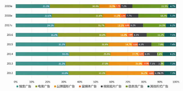 信息流广告占所有广告内的比率