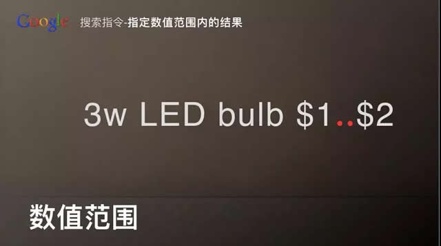 只是它们在不同地区,叫法不一样而已,那么这个就是约等于的。惯用的一些用法,然后我们再看另外一个,我们叫做范围搜索。那么范围搜索的话,在Google上面有一个非常有意思的,就是两个点。这两个点就是中文句号的位置,但是是用英文打进去的,这两个点连续打进去,它是搜索数值范围。 数值范围譬如2017年到2019年之间,或者是多少钱到多少钱,多少公斤到多少公斤,它可以带有单位麦当劳山东招远血案 危机符号的进行搜索。它要搜索这一段范围里面的一些结果,那么这个的话我们看一看屏幕上面的一个指令的介绍。 譬如我现在要找3瓦LED灯泡,1美元网站建设解决方案到2美元之间的,我就可以用屏幕上面这个指令进行搜索。