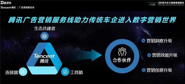 2018年,汽车行业进入“微增长”新常态,并伴随电动化、智能化、网联化、共享化的变革浪潮。在12月5日由车慧主办的“D造进化”2018汽车大数据营销峰会上,“‘微增长’新常态下,行业亟待从未来变革的角度,去推动自身进化。 汽车产业在供给端变革的同时,消费端同样在发生巨大变化。与互联网共同成长的年轻新生代消费群体崛起,逐渐成为汽车消费的主力人群。新生代消费者入场,消费需求多元化、个性化趋势愈发明显,以往汽车消费的影响路径和购买路径都不再适用了。汽车行业的营销进化已成必须。 腾讯广告营销服务线从四年前开始与车慧深度合作,并携手汽车行业的合作伙伴一起致力于共建覆盖全产业链的数字营销生态,有效推动行业增长。腾讯拥有多维洞察,丰富多元的互联网场景和大流量广告体系。车慧则具有重度垂直的汽车服务系统和易车集团的垂直媒体矩阵。通过整合双方能力和资源,能够实现深度的消费洞察和营销全链路的优化。 消费洞察与营销链路打通,对于营销链条各环节的精耕细作,是建立汽车行业营销新生态的基础。作为生态共建者,腾讯一方面提供帮助合作伙伴建设能力的数字化商业工具箱,一方面扮演连接器角色,将自身能力投射给合作伙伴。最终,助力合作伙伴实现营销洞察升级、营销效能升级、营销创意升级。
