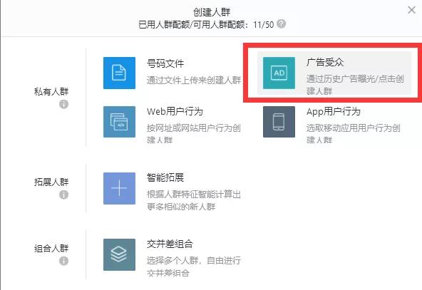 广点通的广告位众多,并不是所有的广告位都适合自己,选择广告位很重要,根据分析自己的用户群体来选择,也是要考虑付费能力的哟。 2. 广点通的DMP数据管理平台 第一,可以这么用,再营销与排除营销