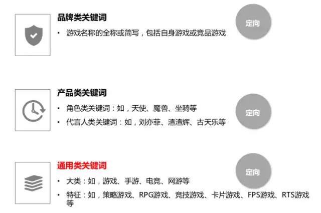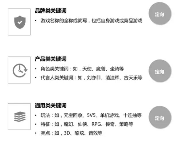 在产品关键词中,广告主可以对某指定关键词的广告标题的点击或转化人群定向投放,进一步细化投放目标。如广告主可直接定位曾在头条平台上搜索过自身游戏全称或简写的人群。