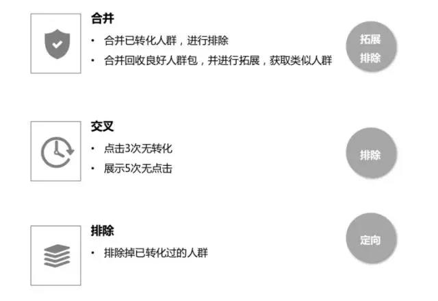 游戏包 在平台自有数据的基础上,头条还会接入第三方数据,第三数据中针对游戏行业推出了游戏包,对市场现有游戏进行了详细划分,新增并细化了游戏题材、美术风格和活跃度等标签,共覆盖21类游戏人群,30种游戏题材,17种美术风格。 运算包、拓展包:是对人群管理的进一步加工操作,使投放更高效。通过对运算包的使用,可帮助广告主对现有人群包,进行合并、交叉、排除的运算,生成最终所需人群包。