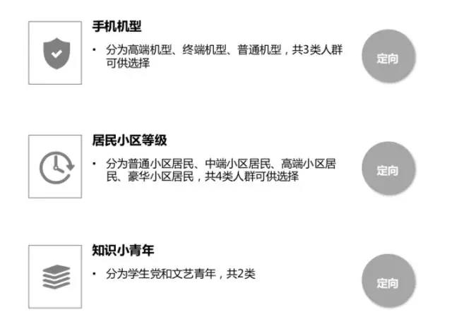 2、人群标签:有效定位标签用户 强大的人群标签划分一直以来都是头条平台的突出优势,而在人群标签中,头条通过应用标签,头条号标签、手机价格标签、抖音视频标签、地理标签、广告数据标签的六重划分,有效定位优质用户。 应用标签:广告主可以排除安卓手机用户中安装过某类应用或某些应用的人群,并可通过应用分类和应用名称两种维度进行排除。 头条号标签:客户可以定投给目标头条号的粉丝人群,例如游戏类头条号等。 广告数据标签中,广告主在使用头条平台投放广告后,可使用此功能生成点击、转化过的人群包,方便其根据之前的数据标签进行二次定向或排除。