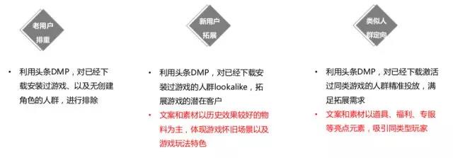 2、某传奇类RPG手游 存在日耗较低,量级少,成本过高等问题,头条决定对其进行精细化目标人群,针对性创意制作及投放。