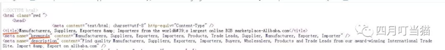 1.B2B平台。里面的确显示了有购买需求的客户信息,但最终目的是引导你注册平台会员交年费。 2.国内同行。显然这不是我们想要的结果。(PS: 同行是敌也是友,搜到同行网站,要学习他们网站是怎么做到谷歌首页,title和description是如何写的。) 3.海关数据公司。也是引导你购买数据的。真正开放海关数据的国家其实很有限,号称手上有全球海关数据的公司,一般不靠谱,很多是拿采购名录才充当,并不是实际交易数据。购买海关数据需谨慎。同时上面的客户都是有稳定供应商的,要做好当备胎的准备。 三.如何筛选谷歌搜索结果 以上三类都不是我们想要的搜索结果,如果每搜索一个关键词都要手动一个个排除,那也是太累了。下面我们讲讲如何通过网页源代码,Google运算符以及高频词,让搜索结果更精准。 3.1 网页源代码 源代码(也称源程序)是指未编译的按照一定的程序设计语言规范书写的文本文件,是一系列人类可读的计算机语言指令。我们不懂计算机语言也不要紧,因为我们本次可以先了解三个meta元素:标签title, 关键词keywords和描述description,以及网页内容text. 打开一个网页,鼠标右键点击网页源代码 Alibaba网页源代码