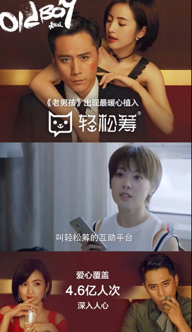 同时,在今年大热的电视剧《老男孩》中,我们也看到了轻松筹恰到好处的植入营销,通过电视剧中没钱治病这样的情节带入,让受众可以在有需求的时候第一个联想到轻松筹,形成明确的品牌记忆。