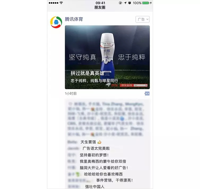 历时33天的世界杯在4:2的比分中悄然落幕,营销人的世界杯战役也同样开始鸣锣息兵。在当下都是短平快的热点营销下,像世界杯这种跨越一个月的长战线式热点营销极为少见,如何在这段时间抓住用户的注意力,激发用户的社交力,最终实现高转化是每一个品牌共同追求的目标。 6月25日,朋友圈广告再次创新,推出限定产品——朋友圈全幅式卡片广告。全幅的内外层创新形式一经上线,就被众多广告主选为了世界杯节点传播的利器。 朋友圈广告自去年的选择式卡片广告,投票式卡片广告和年初的翻转卡片广告开始,一直在不断创新,为营销市场注入更多可选择的创新广告形式,帮助更多的品牌广告主解决节点营销没有新意的痛点。 广告主包括adidas、梅赛德斯-奔驰、 蒙牛纯甄、伊利等,覆盖快消、服饰、汽车等多个行业领域,广告曝光达到数十亿。与世界杯同样精彩的营销到底是如何致胜的呢,通过回顾案例让我们一同见证每一分的精彩。 adidas——全幅展创造力,好评如潮 adidas这支广告在其内层竖屏视频中使用极强的表现力渲染出创造力十足的氛围,将众多足球明星通过不同的动画创意呈现。原生推广页的精致质感将品牌精神“创造力就是答案”呈现地美感十足,得到行业均值1.5倍的点赞率;这种将赛场精神延续在生活当中的尝试不仅在用户心中构建起一个极富创意的品牌形象,更收获了高于行业均值33%的评论率。 梅赛德-奔驰——全幅亮态度,沉浸体验用户好评